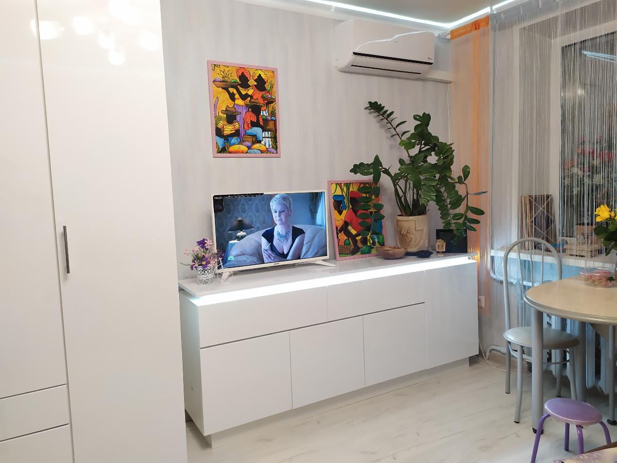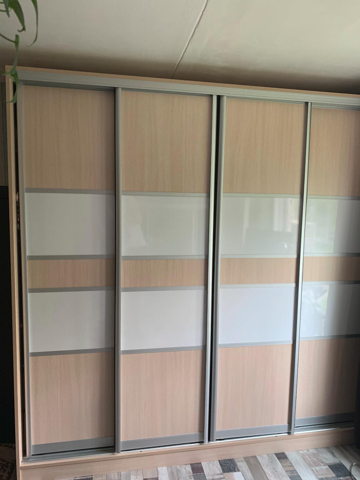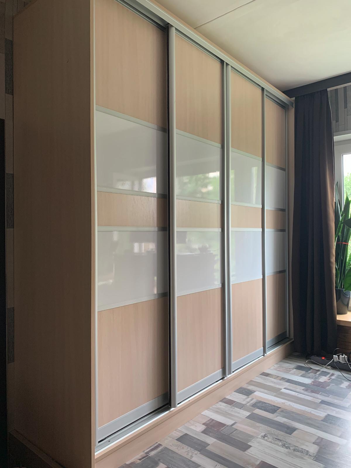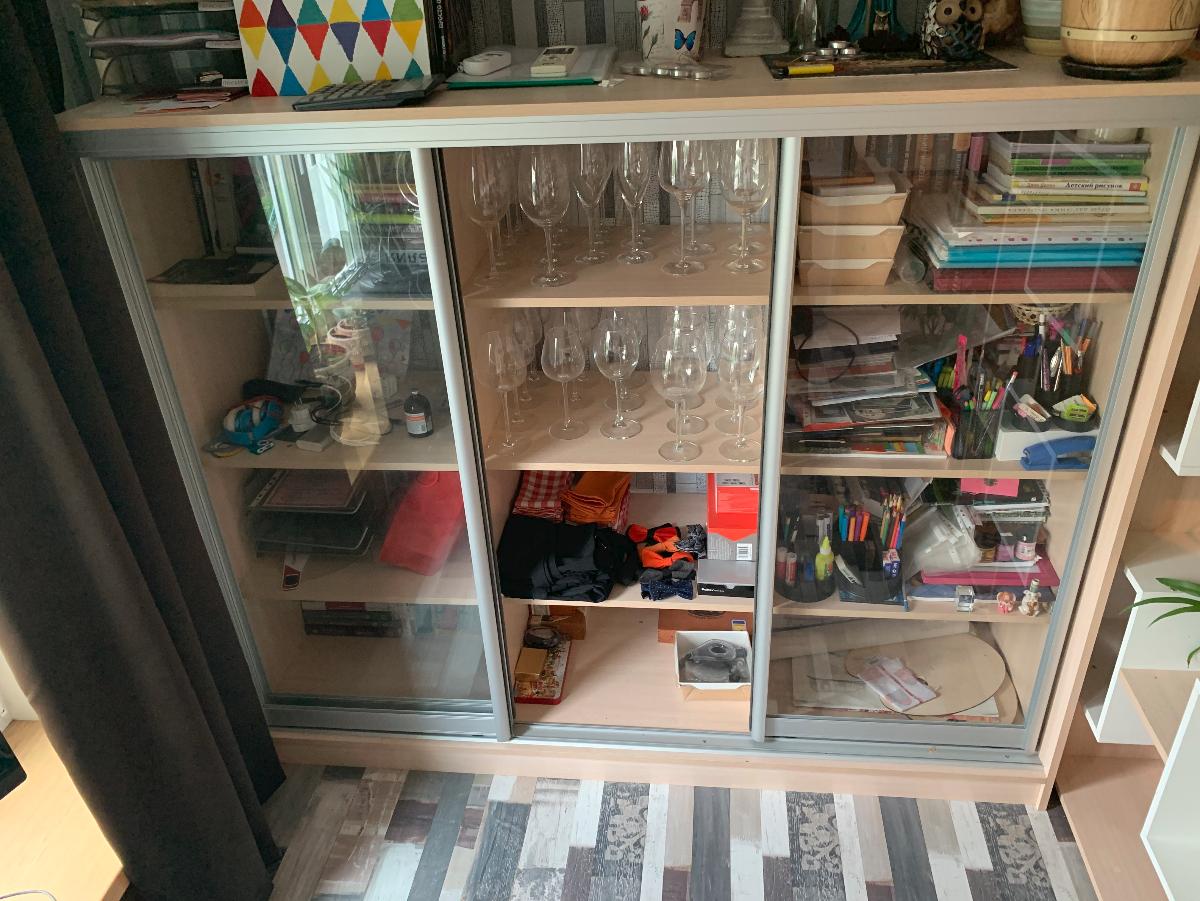 Отлично вписалась в интерьер, выбрали высоту по необходимости. При сборке попросили не прибивать заднюю панель, на наш взгляд получилось симпатично. Очень довольны, двери достаточно прочные, раздвижной механизм открытия работает отлично без нареканий, пользуемся пол года. Спасибо!