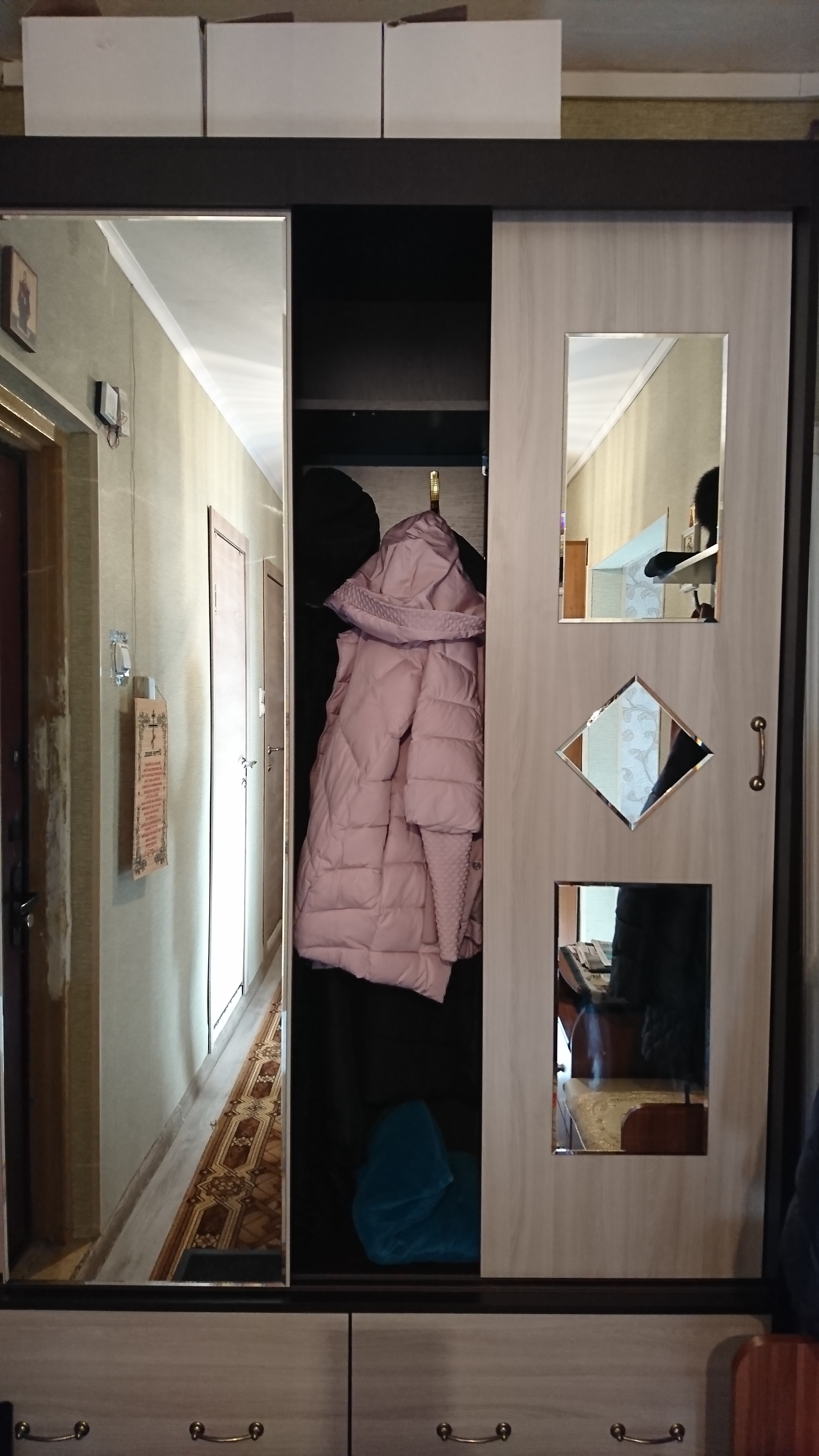 Положительно:Присматривал тумбу для белья (бельявица). Чтобы довольно вместительная была. Конечно искал с верхней загрузкой, но не нашлось. Остановился на модели КП-3, которая есть во многих интернет магазинах мебели. Цена везде одинаковая +-200р. Но выбор остановился на этом магазине, т.к. здесь можно изменять цвет, размер и фурнитуру изделия и другие параметры (кстати это здесь применимо к большинству мебели). В итоге подобрали цвет, выбрал толстую 2мм кромку по всем видимым деталям. Цена конечно выросла в основном из-за кромки, но оно того стоит. Отдельно такую кромку купить проблемно, чтобы самому приклеить.Получил заказ в указанные сроки.Кстати петли дали не простые, не те что были в заказе и вообще при выборе, но они с доводчиком оказались. Собрал тумбу без проблем. В стандартные размеры Ш820-В822-Г450 умещается толстое полуторное одеяло, две средние подушки, наматрасник Лисмарк 140*200 и еще немного места остается.Отрицательно:Был конечно скол покрытия 5*10мм на наружной плоскости дверцы. Но не стал заморачиваться с этим, его не так видно если не присматриваться (на фото можно увидеть справа в центре). Да и доказать брак или при моей сборке проблемно это. Может найду чем затереть скол в цвет...В комплекте идет механизм с фиксацией дверцы, но фиксация там не нужна, она же открывается вниз. При закрытии дверцы приходится делать два движения вверх, а бывает одна только отщелкнется, то приходится "поколдовать" чтобы закрыть. Сюда нужны обычные направляющие без защелки, или газлифты. Но к сожалению выбора/замены этой фурнитуры нет.В целом все устраивает. Главное возможность изменения параметров изделия у многой мебели.