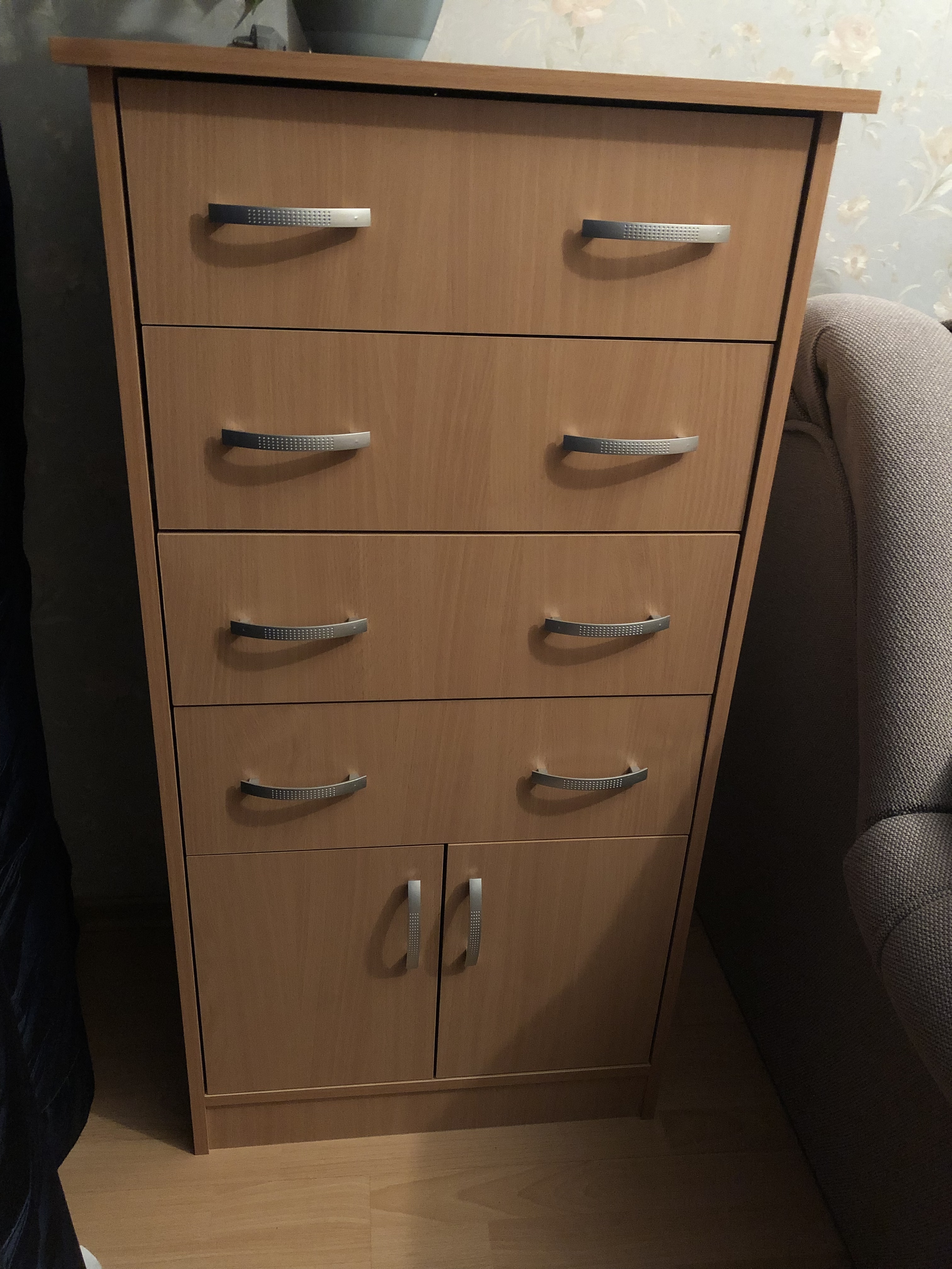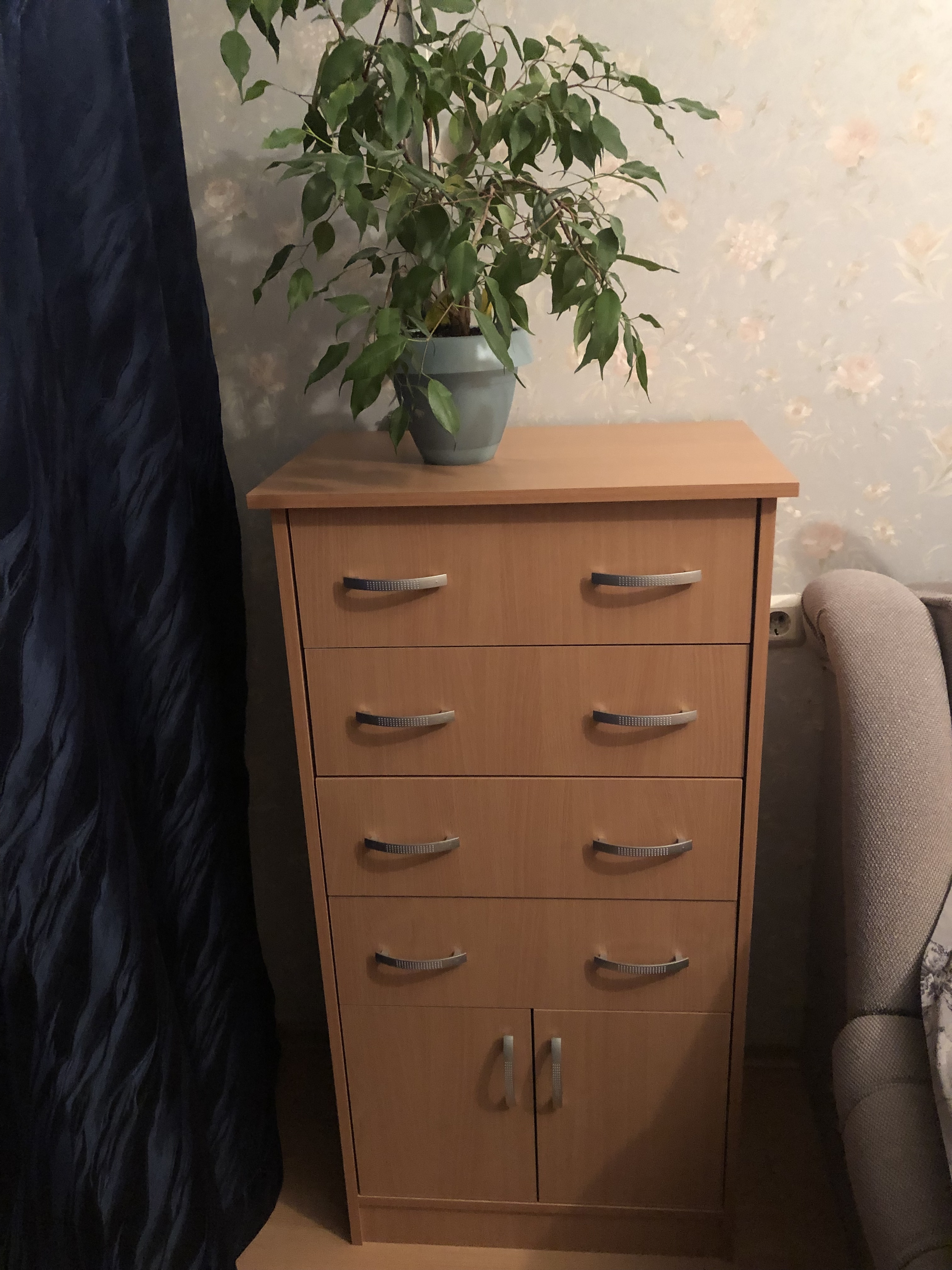 Отличный комод по отличной цене. При небольших размерах, очень вместительный.  Добротная фурнитура. Идеально подошел для детской комнаты и по размеру и по цвету. Рекомендую! Цена/качество. Доставка и сборка в срок и без проблем.