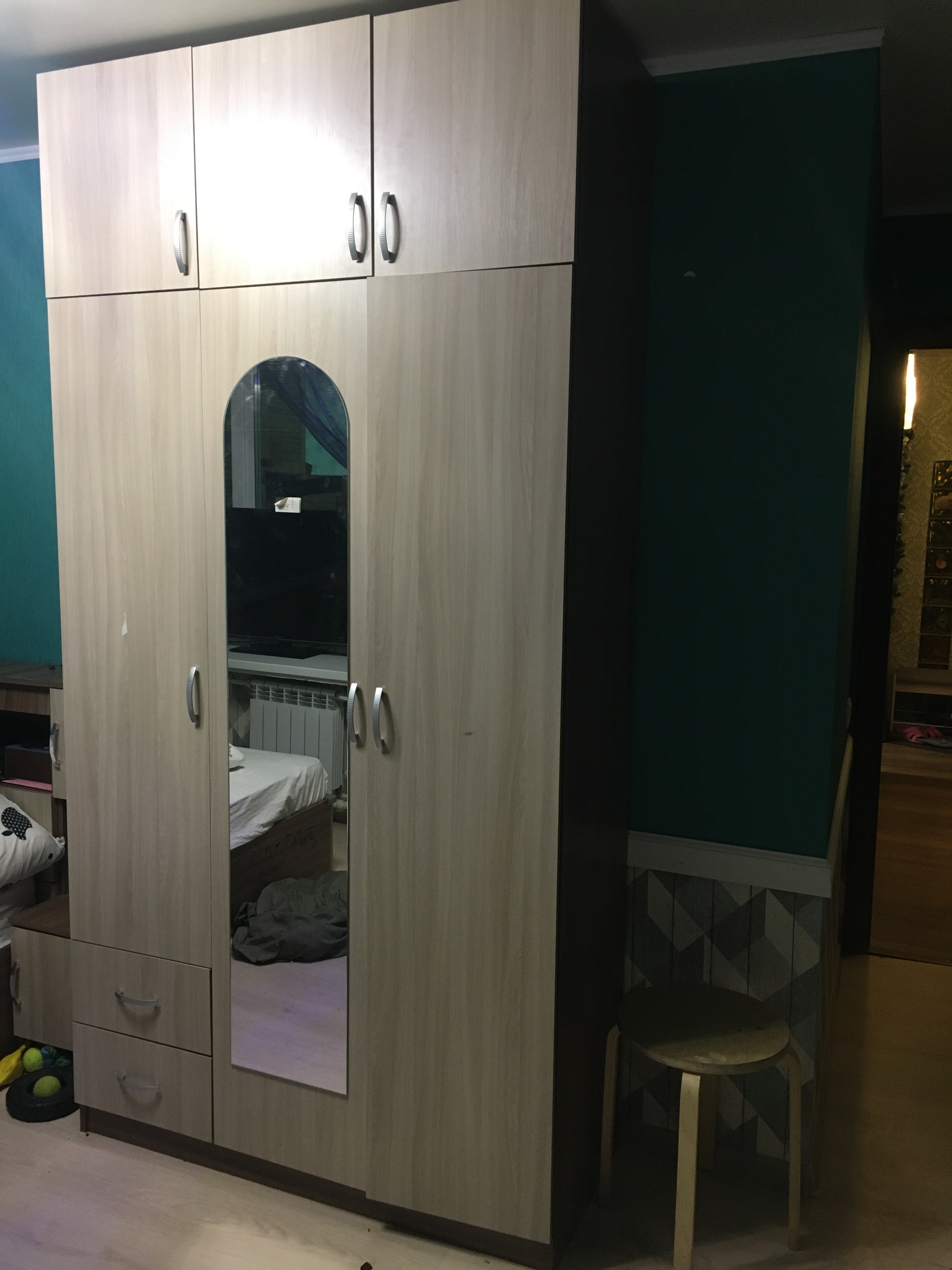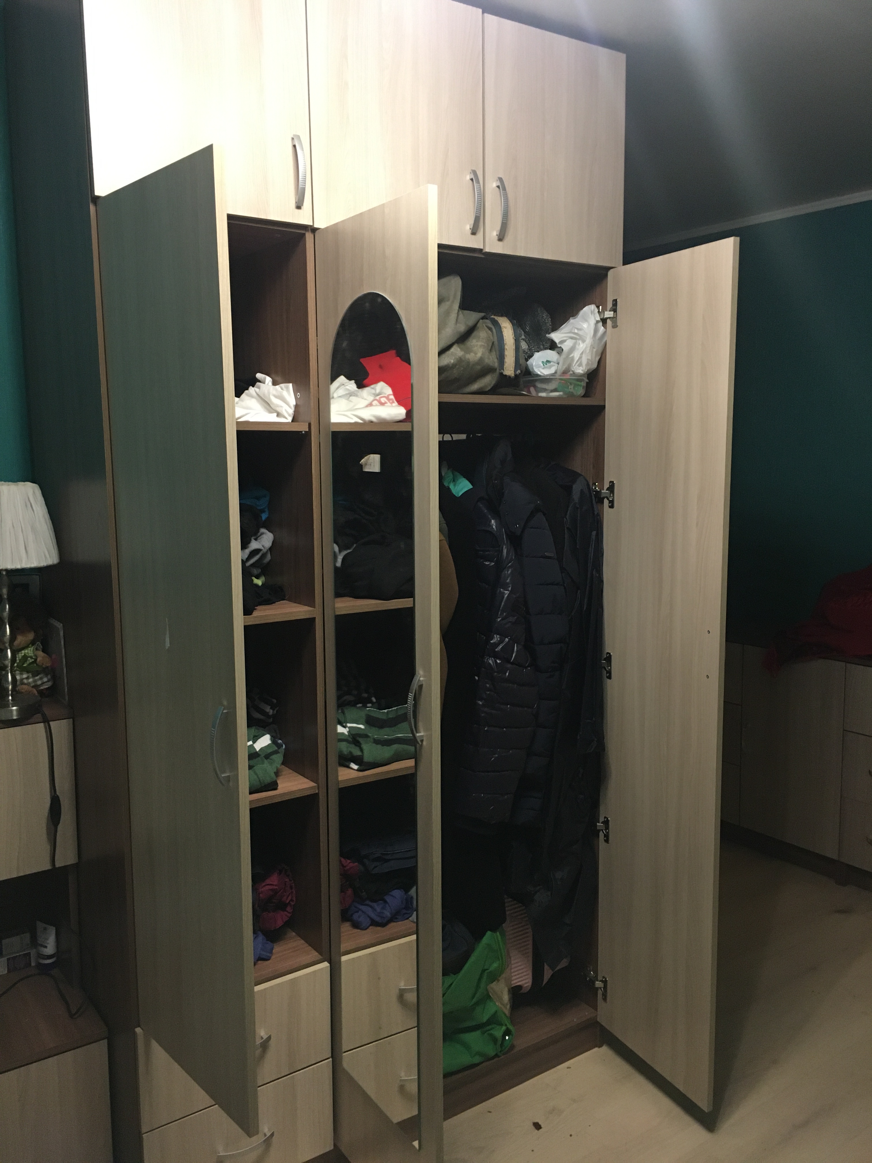 Большой, вместительный, удобный. получился в потолок, как и хотели. Проблем со сборкой не возникло.