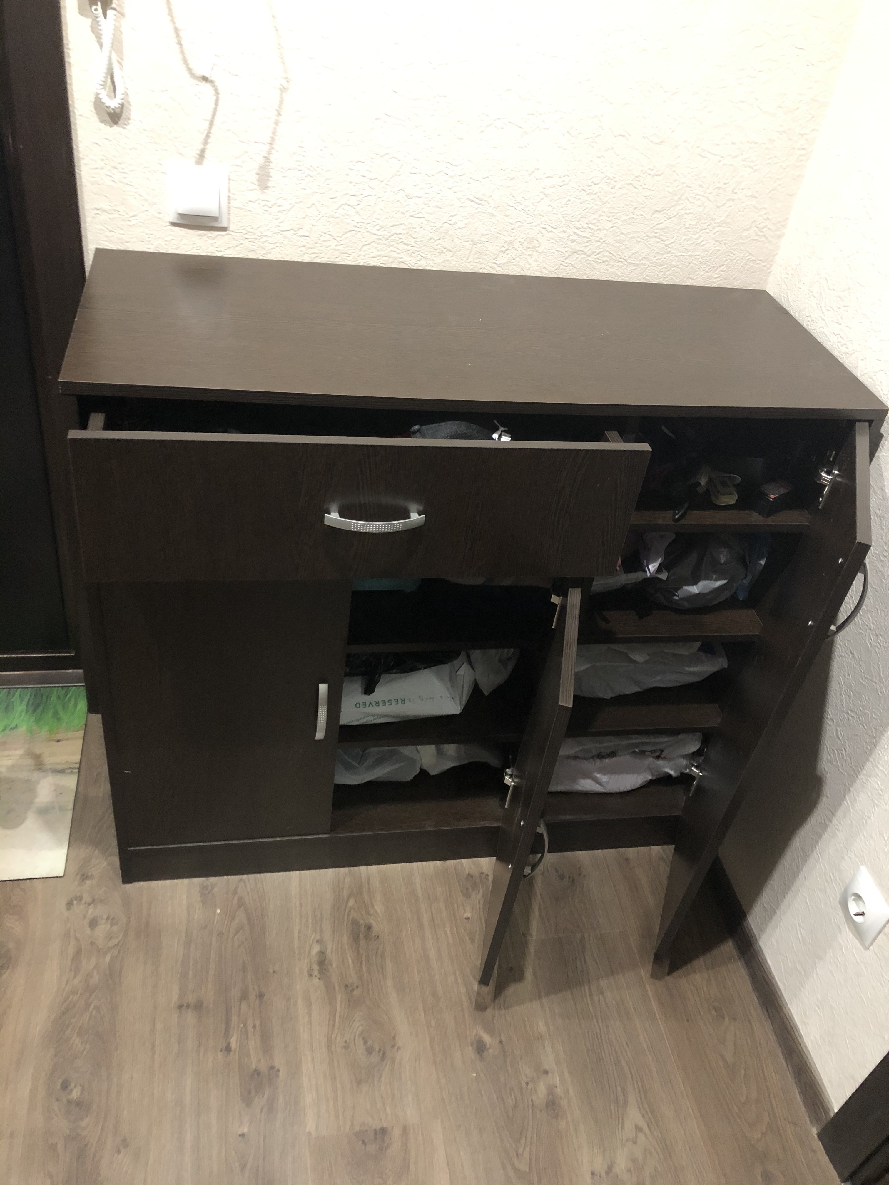 Отличный вариант за такие деньги! Сравнивала стойки и цены в разных магазинах и даже на авито. Но эта стойка бюджетная, не плохого качества, с тремя выдвижными ящика. Да ещё и с секцией, которая закрывается дверцей. Плюс угловая!