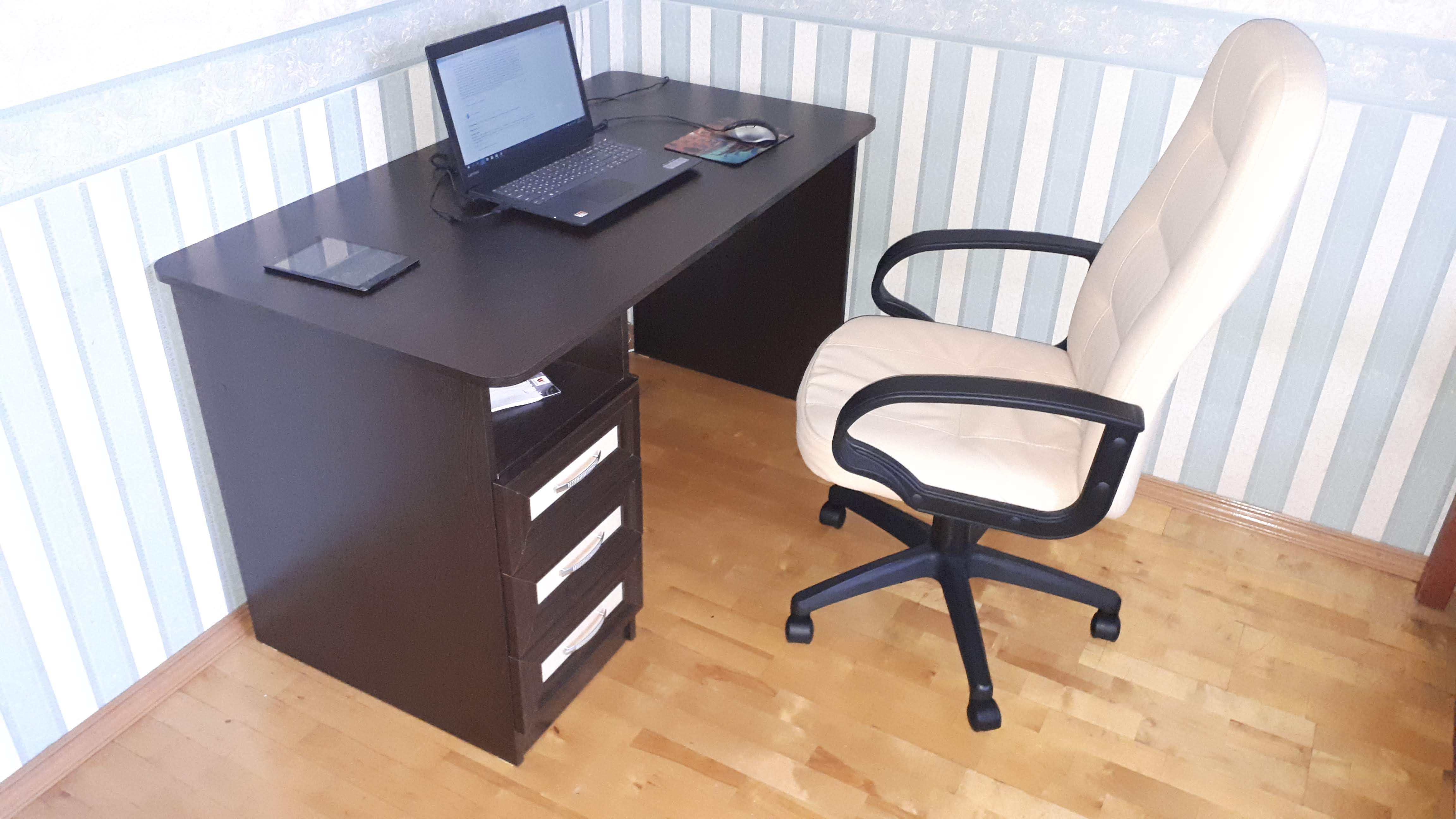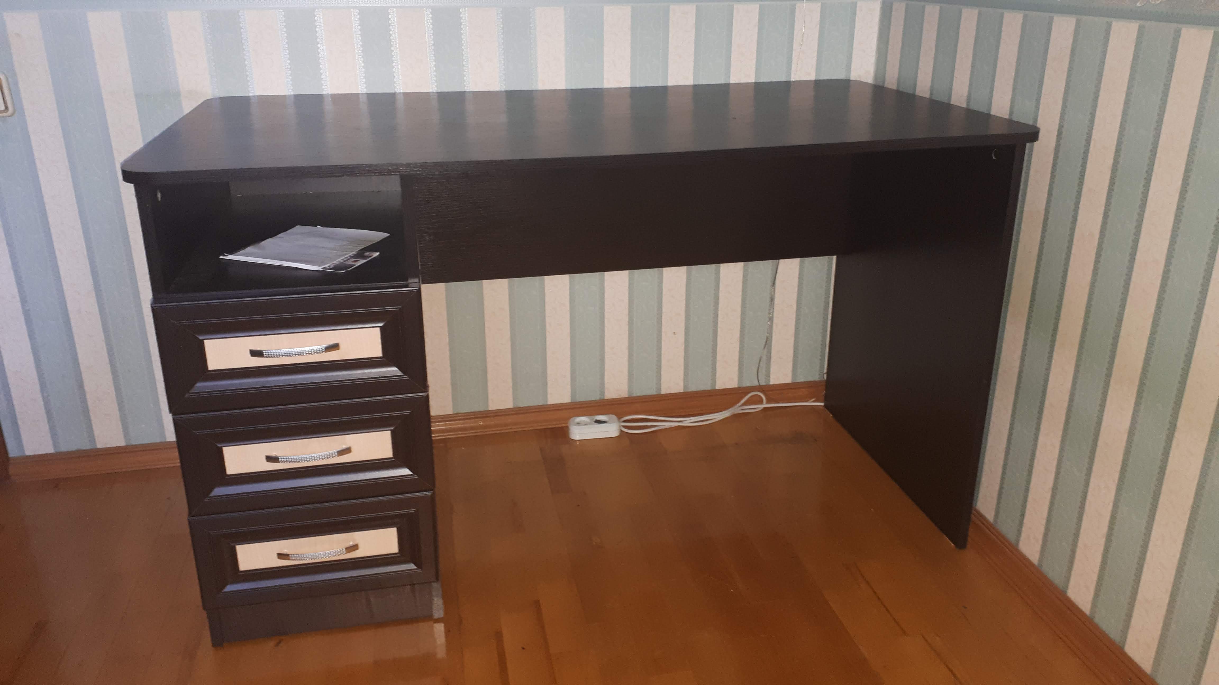 Давно хотел  письменный стол под ноутбук, чтобы были ящики – все хранить в них, а не в куче на столе. Модель понравилась, прикинул размеры под комнату и заказал. Сделали быстро. Привезли в срок. Собирал сам, боялся что чего-нибудь забудут положить, но комплект весь был без нареканий, включая схему сборки. Стол отличный, нравиться.
