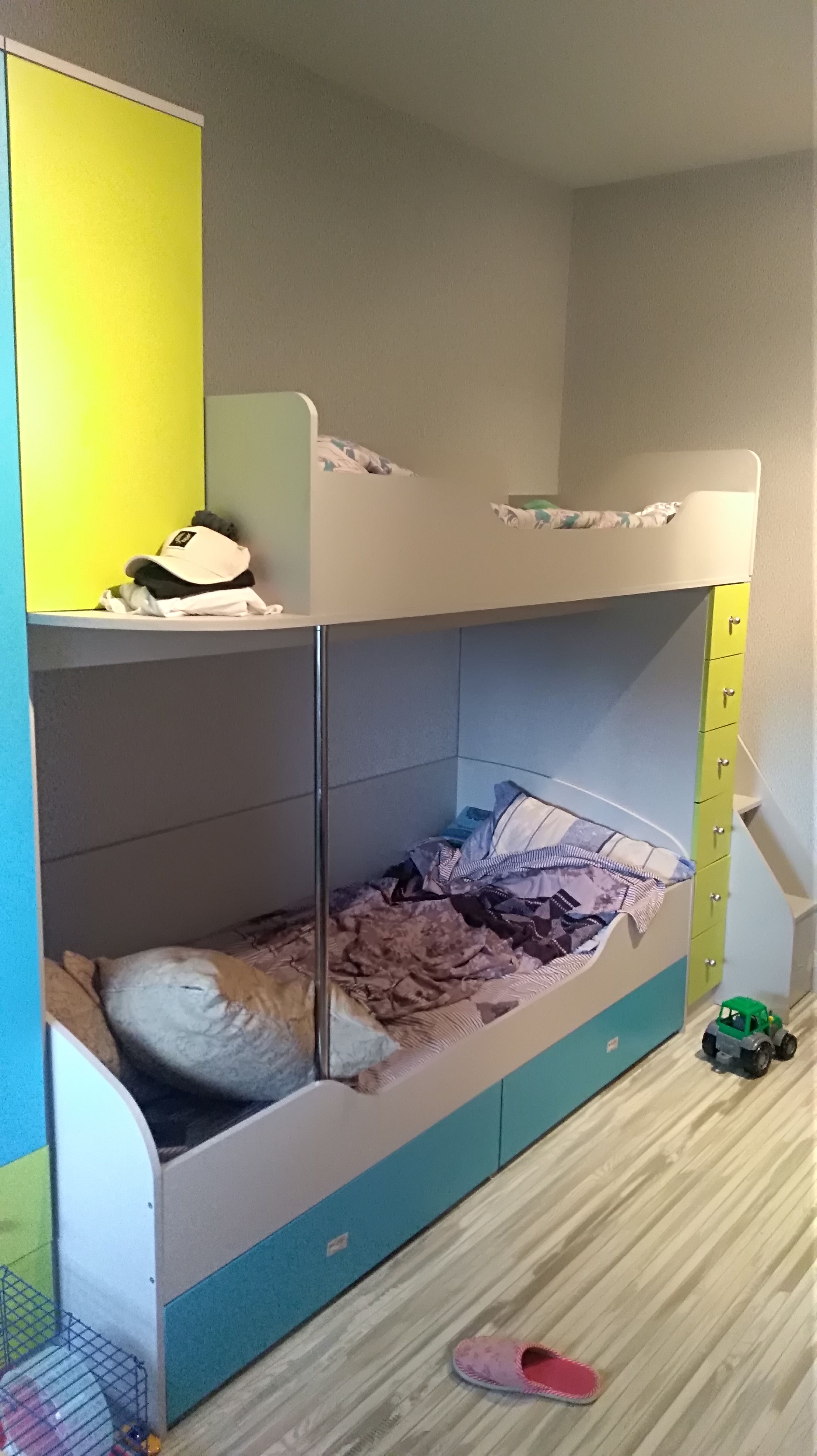 Кровать доставили за две недели. По нашему желанию, внесли кое-какие-корректировки, что очень понравилось. Качество отличное, цвет отличный. Единственный минус отсутствие инструкции по сборке и куча наклеек, которые сейчас не так то просто убрать...