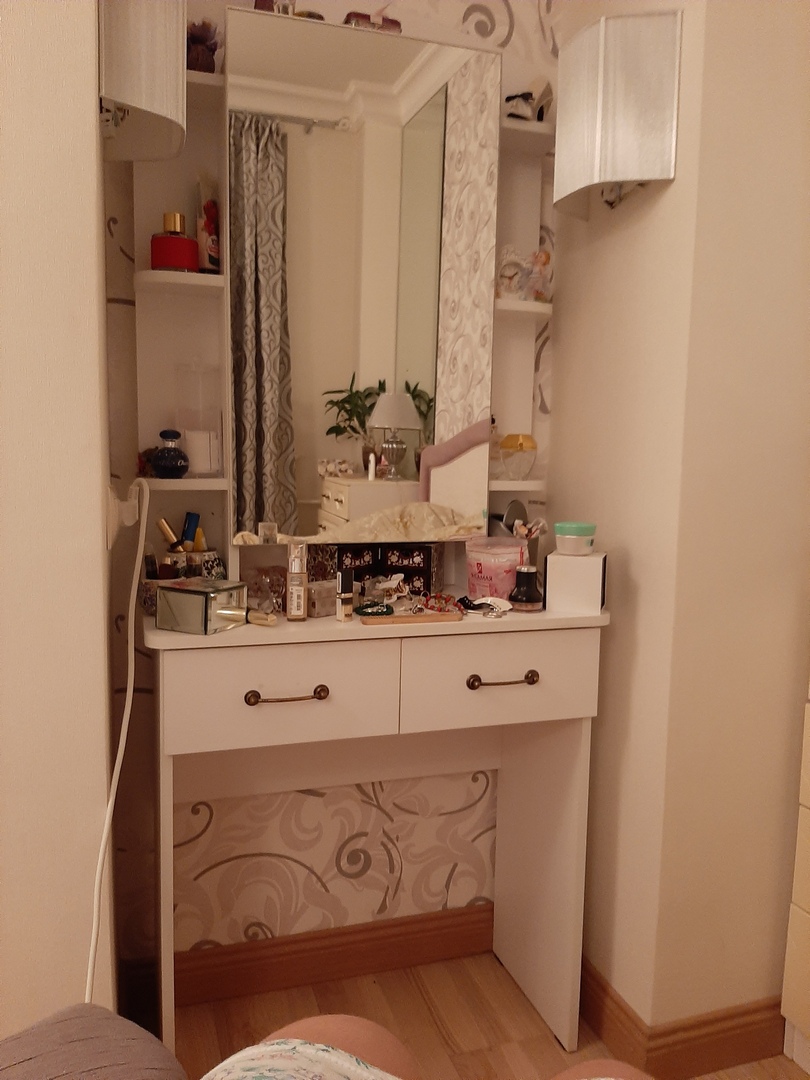 заказ номер 5893 от 10.04.2016 Туалетный столик Милано СБ-2329 BMS Давно искала туалетный столик, который поместился бы в мою нишу! Очень удобно что в магазине можно изменять размеры и цвет мебели, и в то же время мебель не получается такой дорогой как при изготовлении на заказ. Неожиданный бонус - зеркало открывается и там полочки. Очень удобно!
