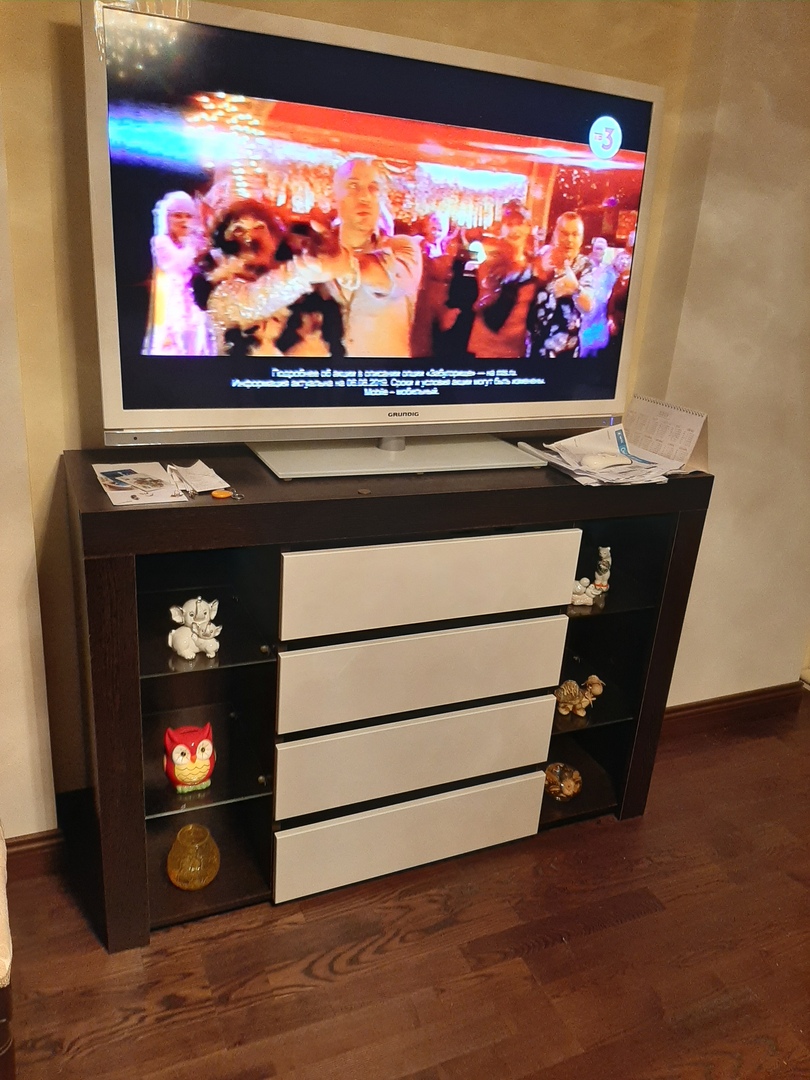 заказ номер 165242 от 04.02.2019 Комод Милан 4-SZ BMS Долго искала тумбу под ТВ, которая подошла бы мне по высоте, размерам и стилю. Изменяемые размеры и цвета помогли мне достичь нужного результата) Смотрится эффектно, как более дорогая мебель. Минус что на фото показана подсветка в открытых частях, а в комплектации её нет. С подсветкой было бы ещё красивее. И при нагрузке немного проседают ящики, надо было брать хорошие направляющие, а не экономить.